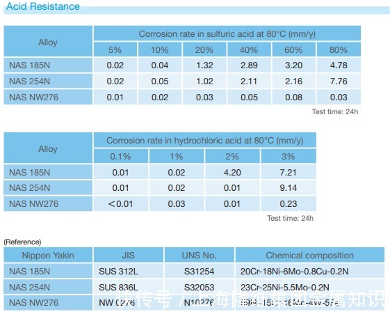摘要:NAS NW276 (UNS N) 与 Hastelloy? C-276 合金相当 NAS NW276 是一种 Ni-Cr-Mo 合金,在氧化和还原气氛中均具有出色的耐腐蚀性。在该合金中,通过降低C和Si的含量,抑制了热影响区(HAZ)的碳化物析出