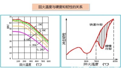 ? ? ? ? ? 应用:保持钢在淬火后的高硬度和耐磨性时用低温回火;在保持一定韧度的条件下提高钢的弹性和屈服强度时用中温回火;以保持高的冲击韧度和塑性为主,又有足够的强度时用高温回火。一般钢尽量避免在230℃至280℃、不锈钢在400℃~450℃之间回火,因为这时会产生一次回火脆性。